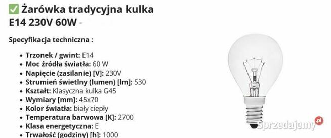 ŻARÓWKA TRADYCYJNA KLASYCZNA KULKA G45 E14 60W